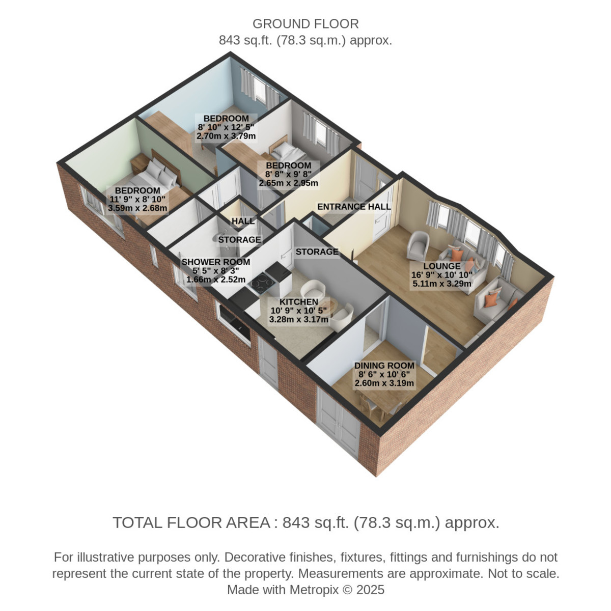 BEDROOM 8' 10" x 12' 5" (2.70m x 3.79m) Spacious double bedroom with front facing double glazed window, radiator, tiled flooring and coving.
