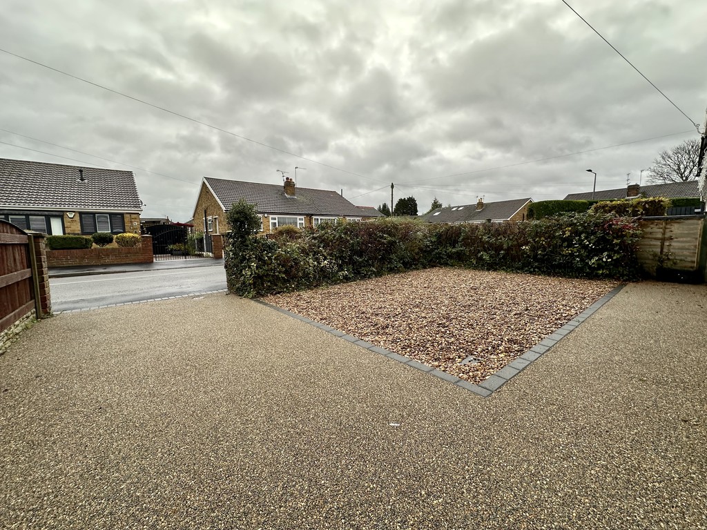 FRONT GARDEN/DRIVEWAY Small pebbled area, fence/wall enclosure partial enclosure, open access to the resin driveway providing off street parking to the side of the bungalow and further open access to the rear garden.