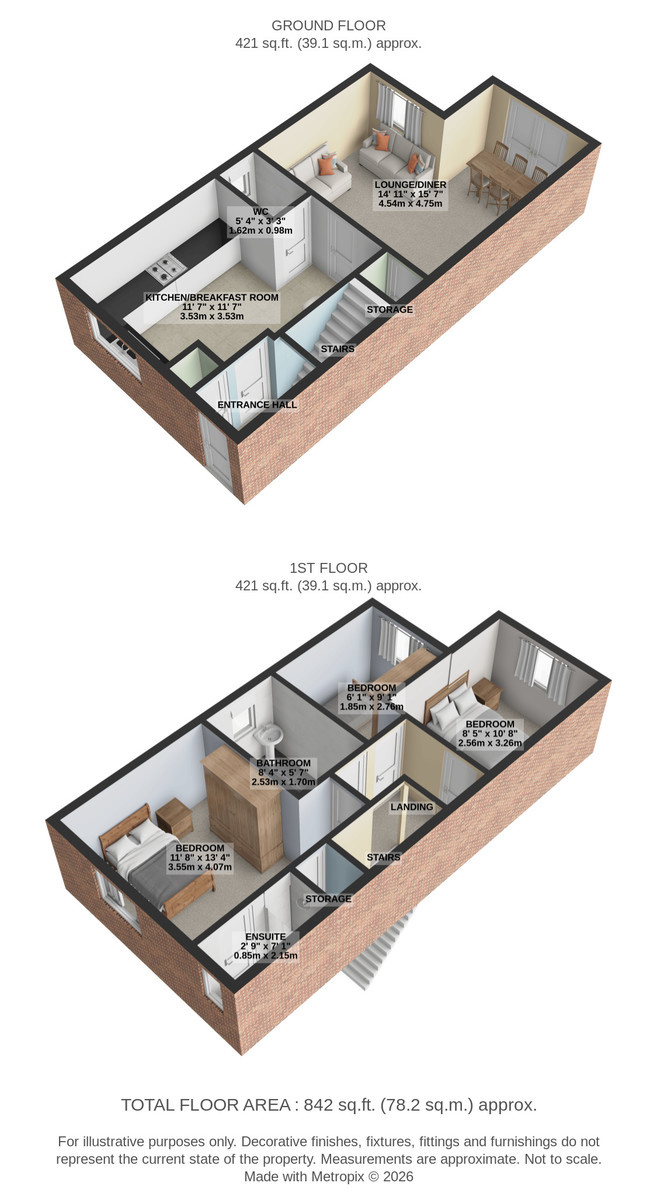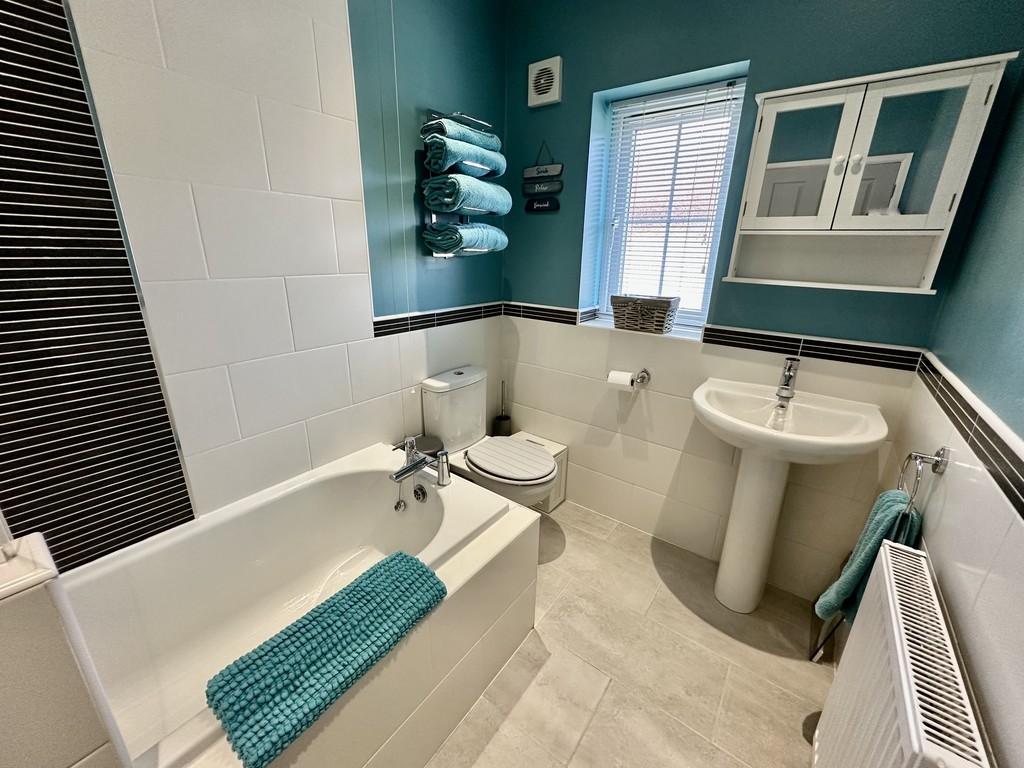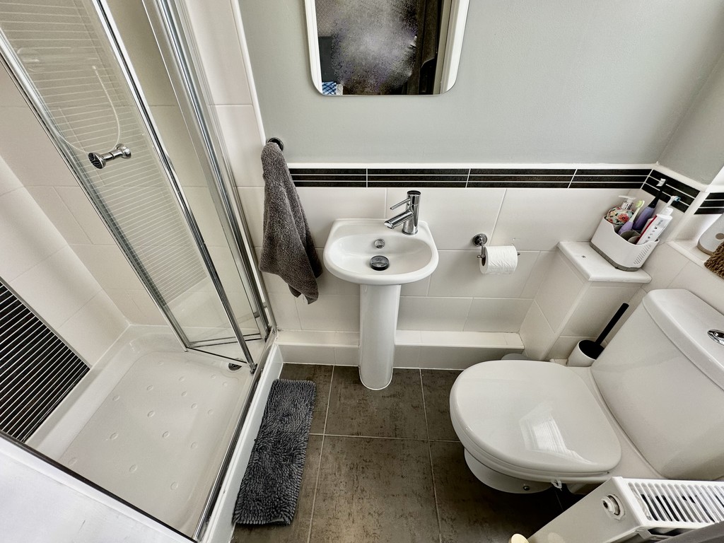 WC 5' 3" x 3' 2" (1.62m x 0.98m) Benefitting from a low flush WC, wash hand basin, extractor fan, tiled flooring and side facing double glazed frosted window.