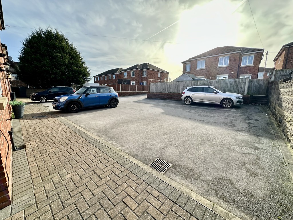 FRONT PARKING AREA With space in front of the property for off street parking which is accessed via shared driveway for all properties in the cul de sac. A side access gate leads to the rear garden.