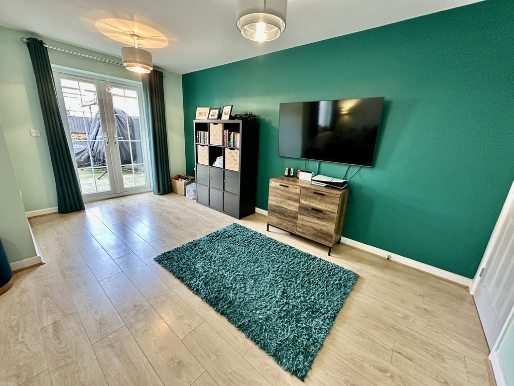 LOUNGE/DINER 14' 10" x 15' 7" (4.54m max x 4.75m max) L-shaped room at the rear of the house perfect for a family reception/dining area, with rear facing double glazed French doors to the decking, rear facing double glazed window, laminate flooring, radiator and storage cupboard beneath the stairs.