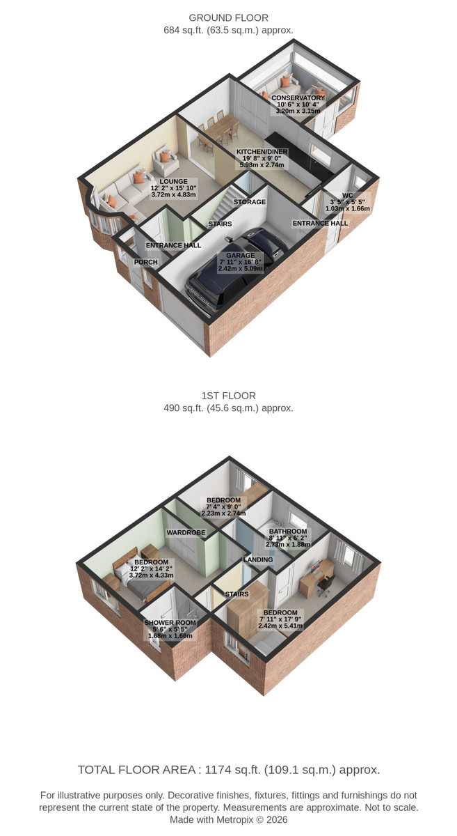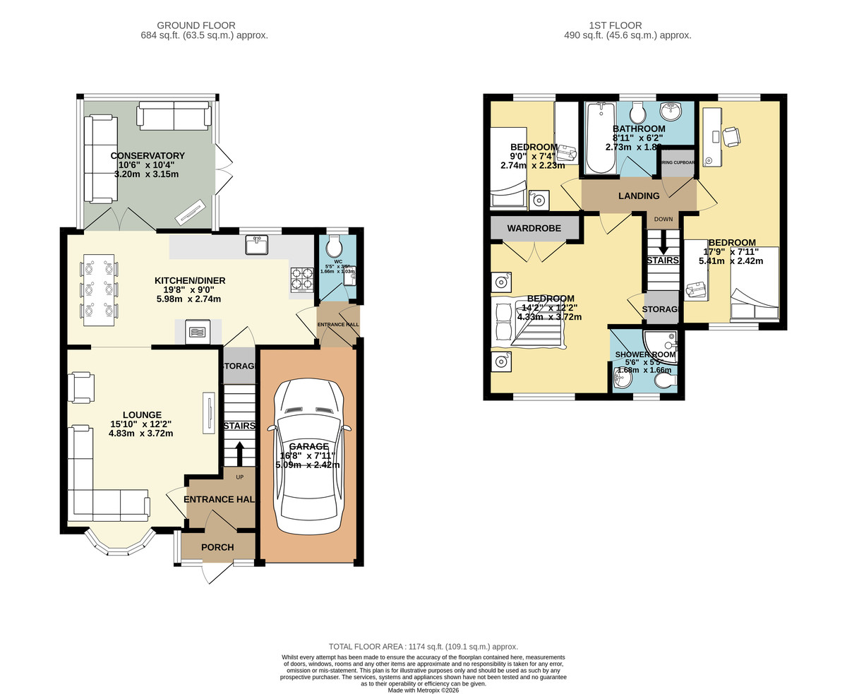 WC 3' 4" x 3' 6" (1.03m x 1.07m) Benefitting from a low flush WC, wash hand basin within a vanity unit, radiator and a rear facing double glazed frosted window.