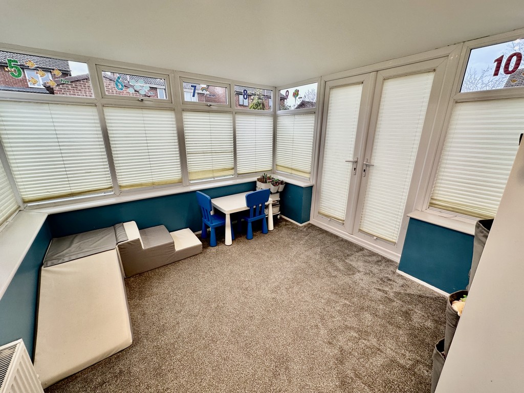 CONSERVATORY 10' 5" x 10' 4" (3.20m x 3.15m) Overlooking the garden a pleasant additional reception space with side/rear facing double glazed windows, side facing double glazed French doors to the patio, radiator and spotlights.