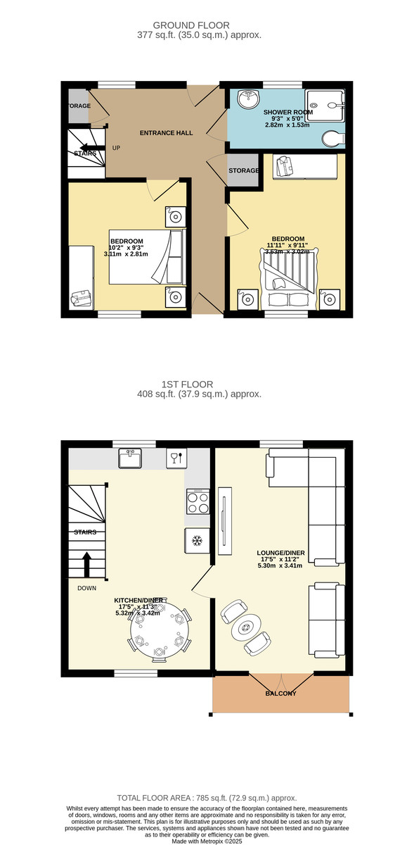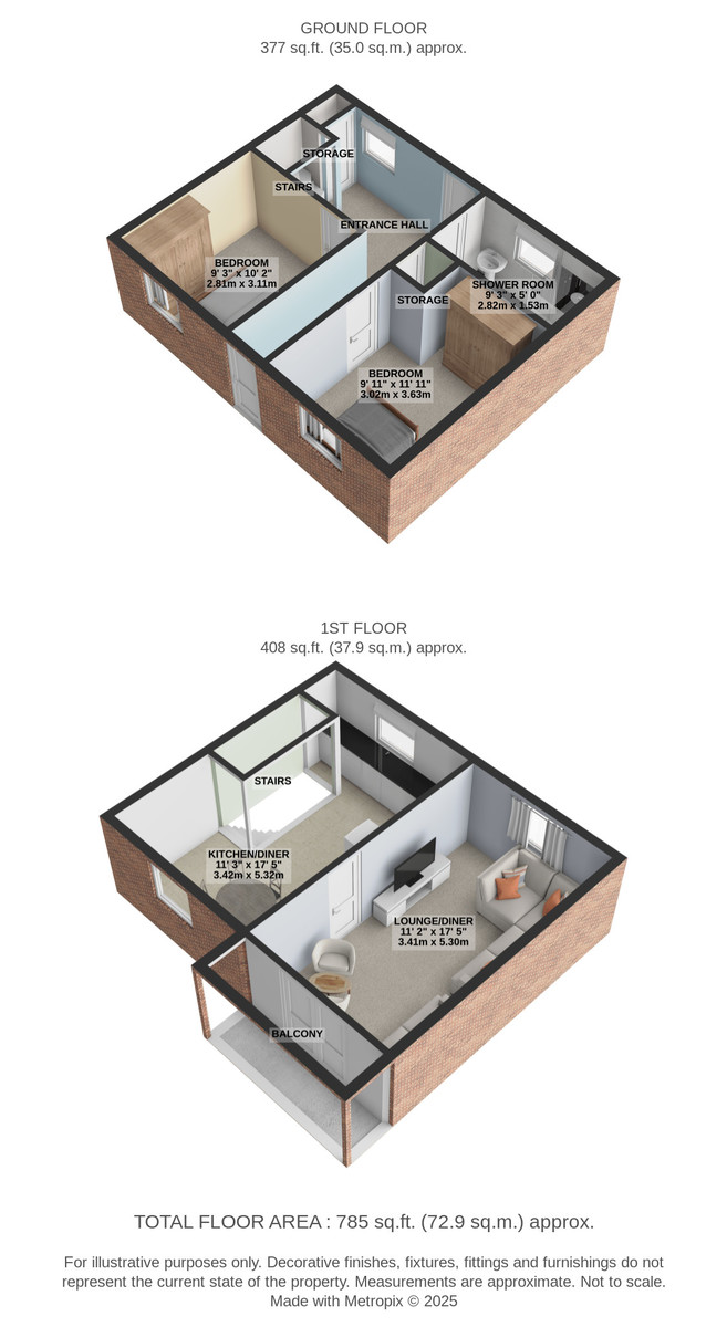 GROUND FLOOR SHOWER ROOM 9' 3" x 5' 0" (2.82m x 1.53m) Nicely presented shower room with low flush WC, wash hand basin, shower cubicle, heated towel radiator, spotlights, extractor fan, tiled walls, tiled flooring and wall mounted mirror.