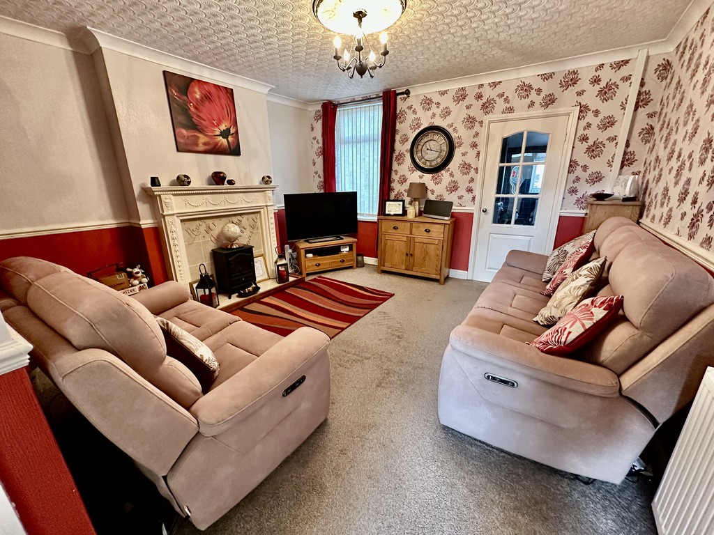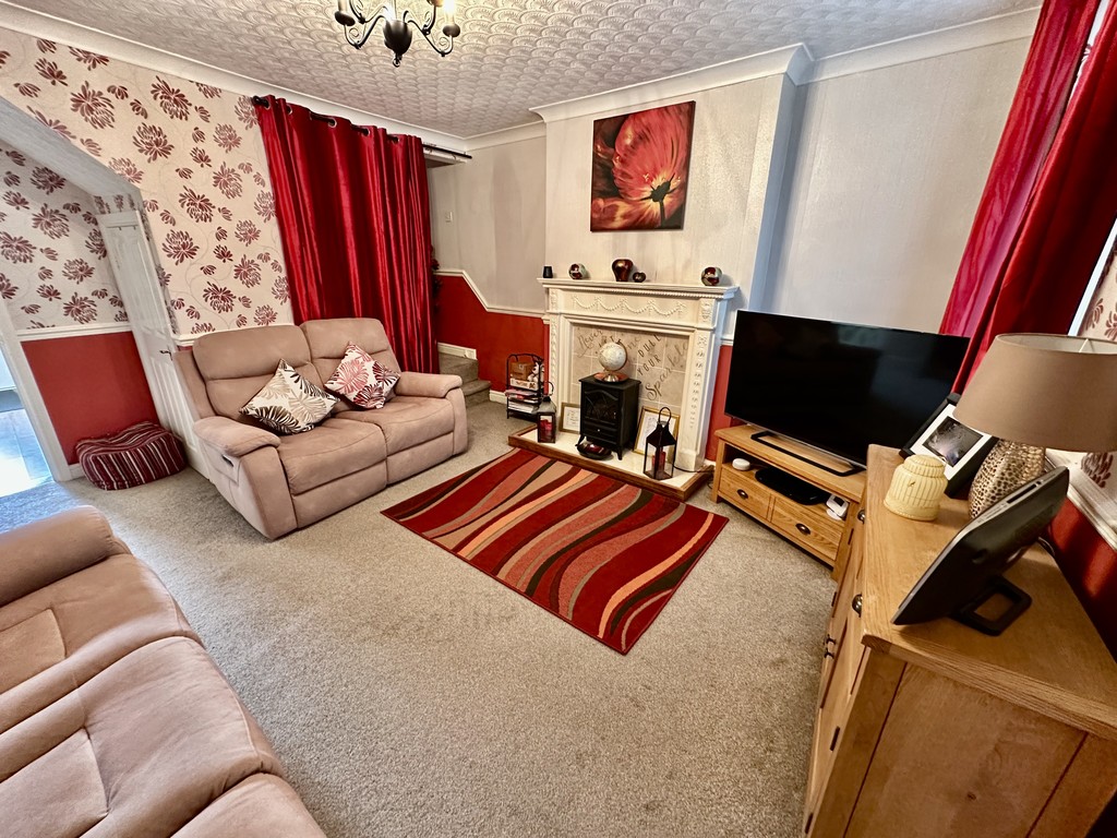 LIVING ROOM 13' 5" x 12' 9" (4.09m x 3.89m) Lovely further reception room with rear facing double glazed window, door to the kitchen at the rear, open access to the stairs, storage cupboard beneath the stairs, radiator, dado rail, coving to the ceiling and feature decorative fireplace.