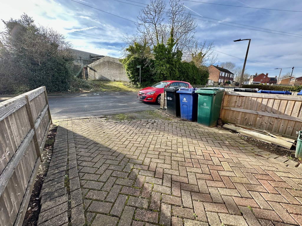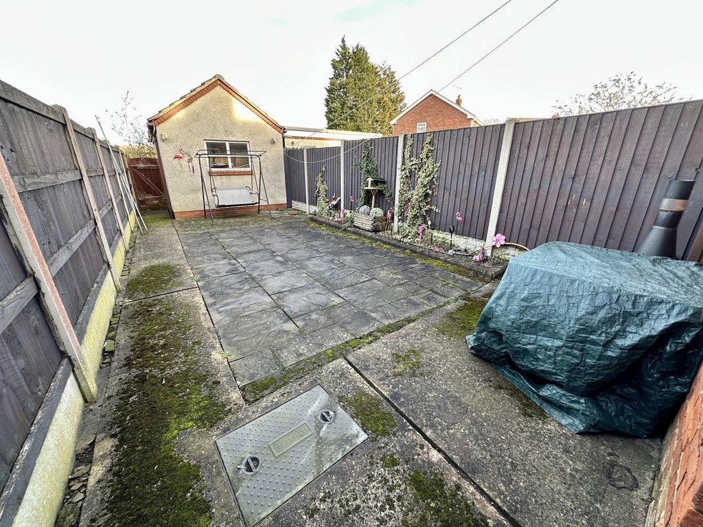 REAR GARDEN Fence enclosed paved area with rear access gate to the garage and shared rear vehicle access.