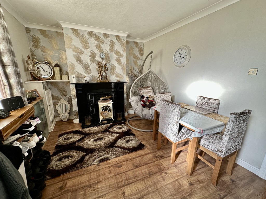 DINING ROOM 13' 5" x 10' 4" (4.11m x 3.16m) Fabulous reception room with versatile use but currently utilised as the dining room with decorative feature fireplace, front facing double glazed window, radiator, laminate flooring, coving to the ceiling and door to the living room.