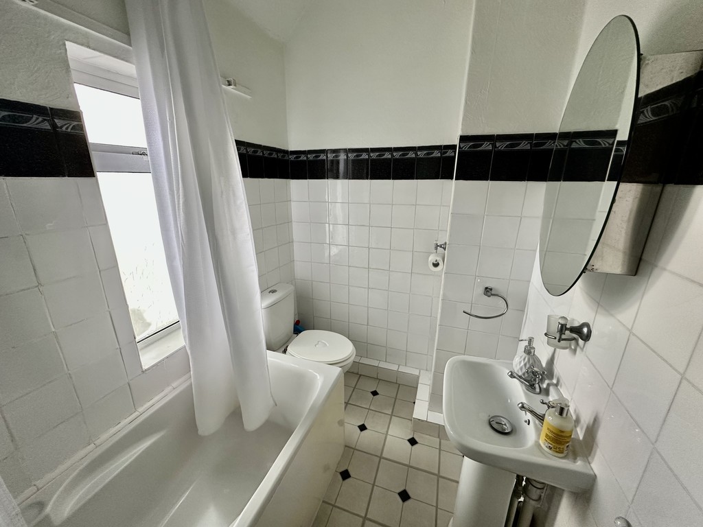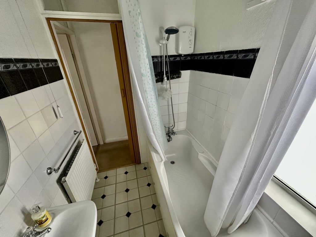 BATHROOM 4' 11" x 7' 2" (1.52m x 2.19m) Comprising of a wash hand basin, low flush WC, bath with shower curtain rail mounted above, electric shower unit, shower attachment, partially tiled walls, radiator and rear facing double glazed frosted window.
