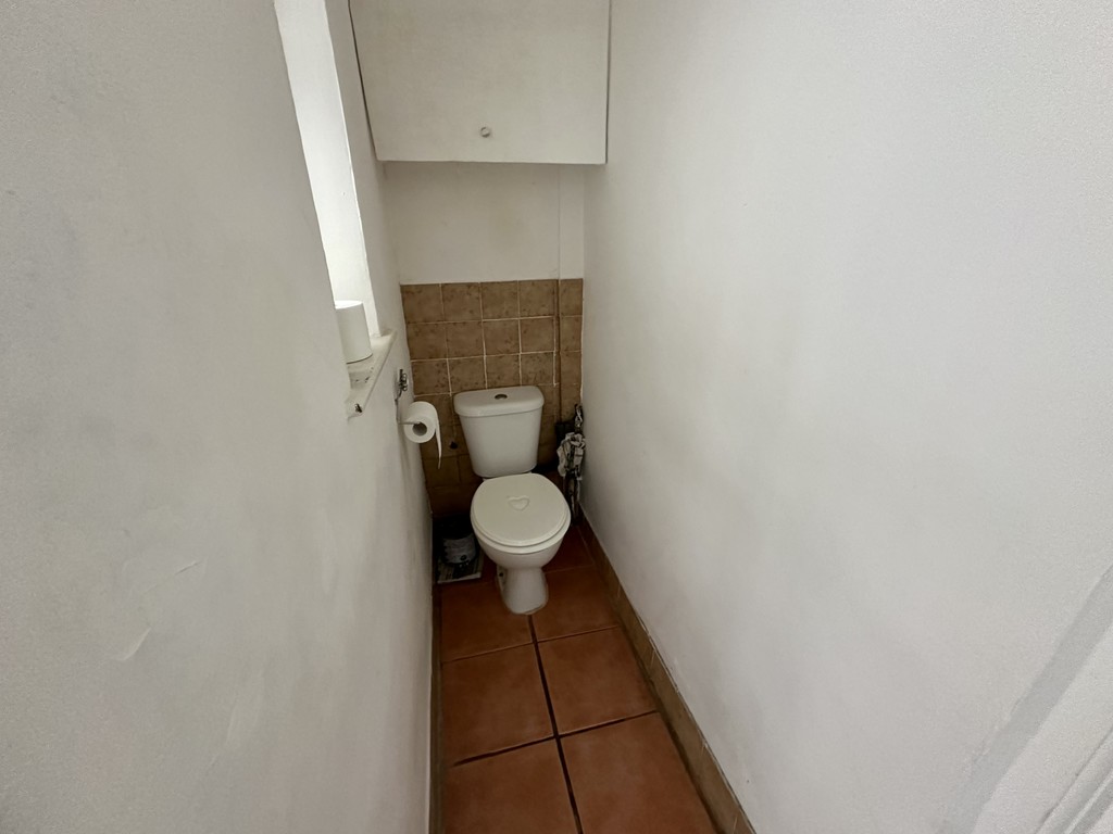 WC 2' 4" x 8' 6" (0.73m x 2.61m) Low flush WC, tiled flooring, partially tiled walls, coving and a side facing single glazed frosted window.