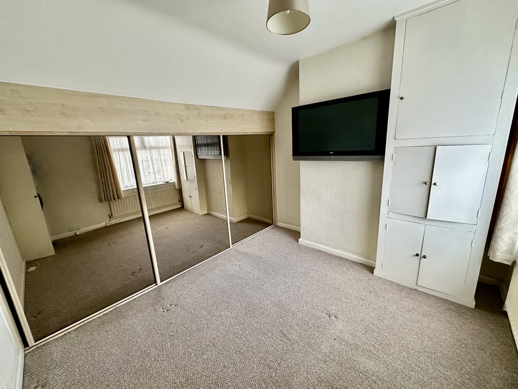 BEDROOM 9' 3" x 10' 11" (2.82m x 3.33m) Spacious bedroom with rear facing double glazed window, storage cupboard holding the boiler unit, storage with sliding mirror fronted doors and a radiator.