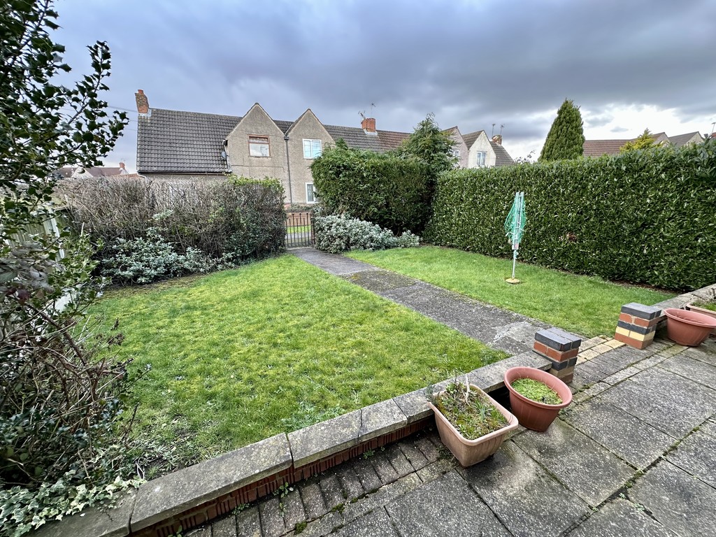 FRONT GARDEN Small lawned area, hedge/fence enclosure, front access gate and path leading to the front door.