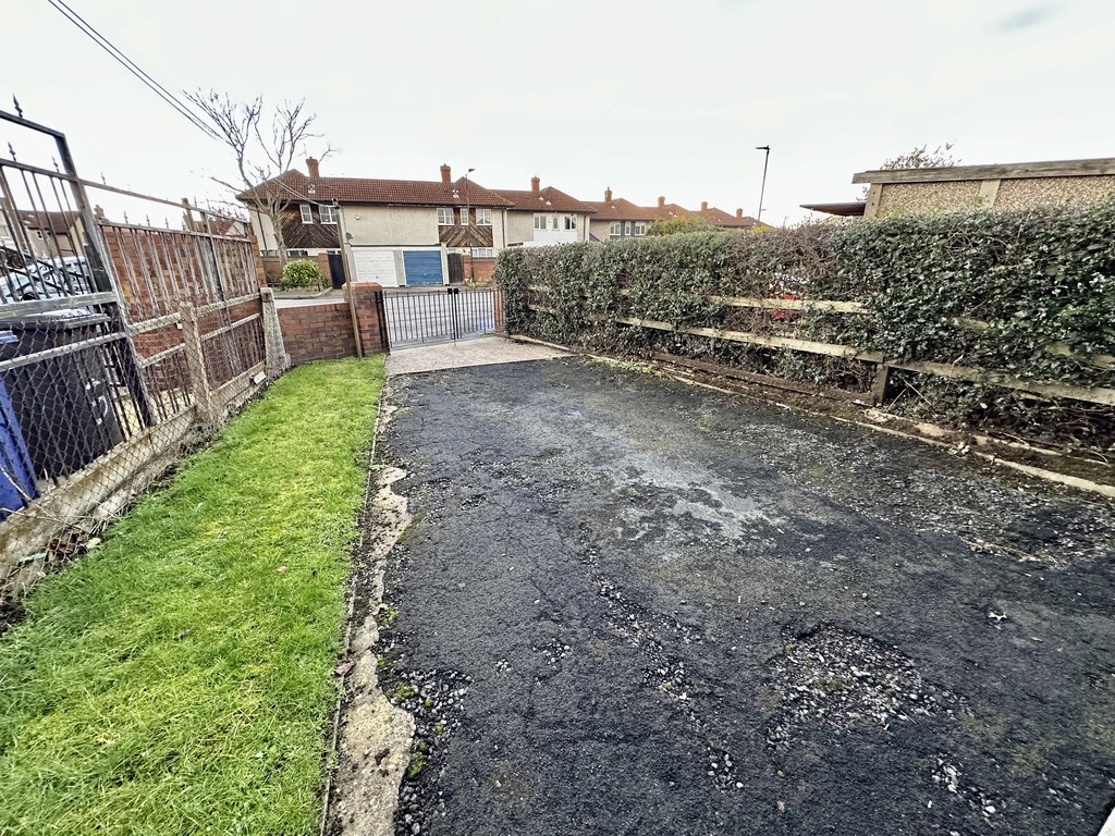 REAR GARDEN/DRIVEWAY Double gates lead to an off street parking area to the rear of the house, wall/fence enclosure, small lawn and access to the garage.