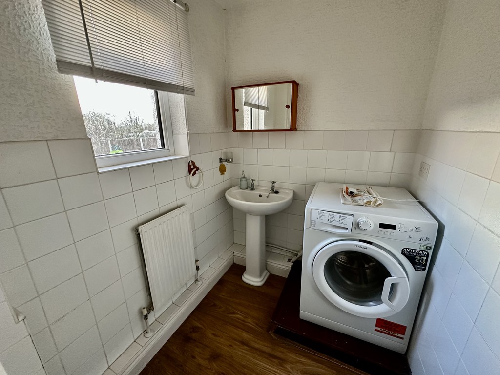UTILITY ROOM 5' 7" x 4' 10" (1.71m x 1.48m) Useful further space offering plumbing for a washing machine, partially tiled walls, wash hand basin, radiator, coving and rear facing double glazed window.