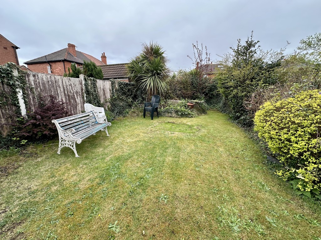 REAR GARDEN Mainly laid to lawn with surrounding bushes, trees, shrubs etc, this L-shaped garden offers excellent garden space with fence/wall enclosure, side access gate from the driveway, paved path and a concrete area ideal for garden furniture.