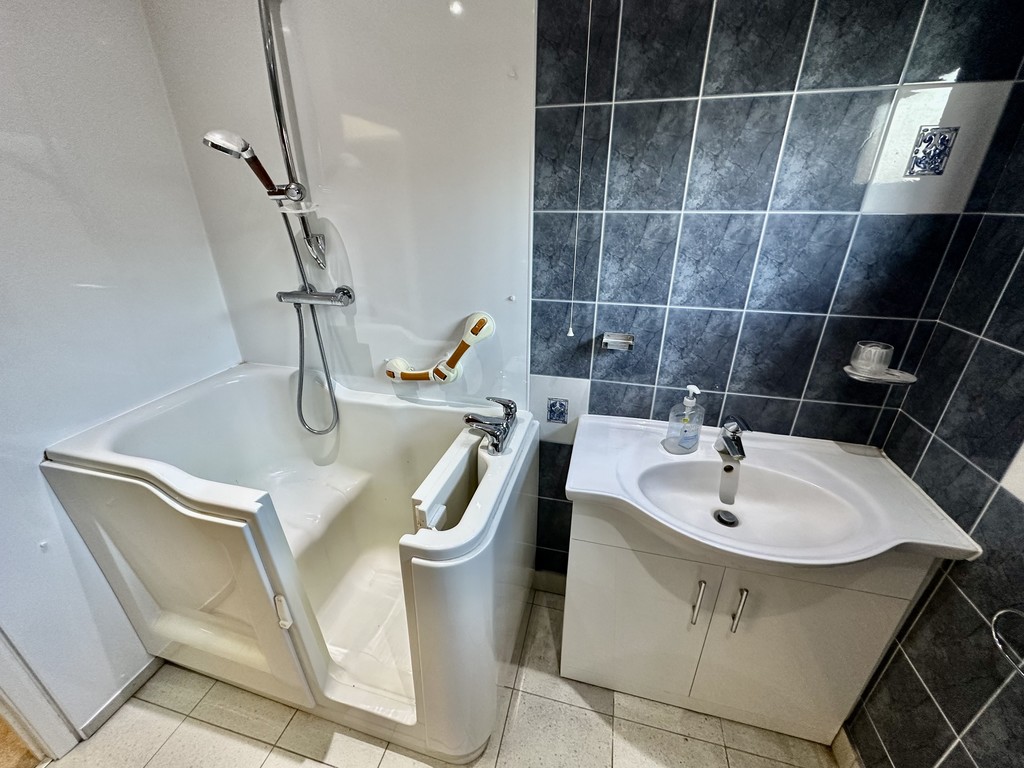 KITCHEN 8' 2" x 12' 8" (2.49m x 3.87m) Lovely kitchen space with modern fitted cabinetry at both eye and base level, work surfaces with matching splash backs, incorporating a single and half bowl sink with drainer, four ring electric hob with extractor fan above, single electric oven, integrated microwave, integrated dishwasher, space for a fridge/freezer, spotlights, storage cupboard, side facing double glazed window and side facing double glazed frosted door.