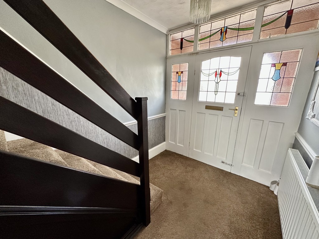 ENTRANCE HALL 10' 9" x 6' 10" (3.29m x 2.09m) This lovely home is accessed via the front facing single glazed frosted coloured glass feature door to the entrance hallway, single glazed feature colour windows surrounding the door, radiator, dado rail, coving to the ceiling and stairs to the first floor landing.