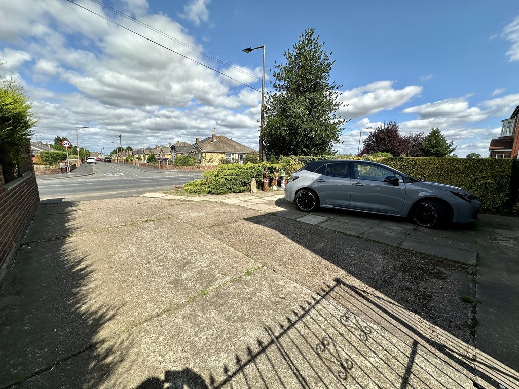 FRONT GARDEN/DRIVEWAY Double gates lead to a paved/concrete driveway providing plenty of off street parking space, hedge to the side, wall/fence partial enclosure, bushes and shrubs.