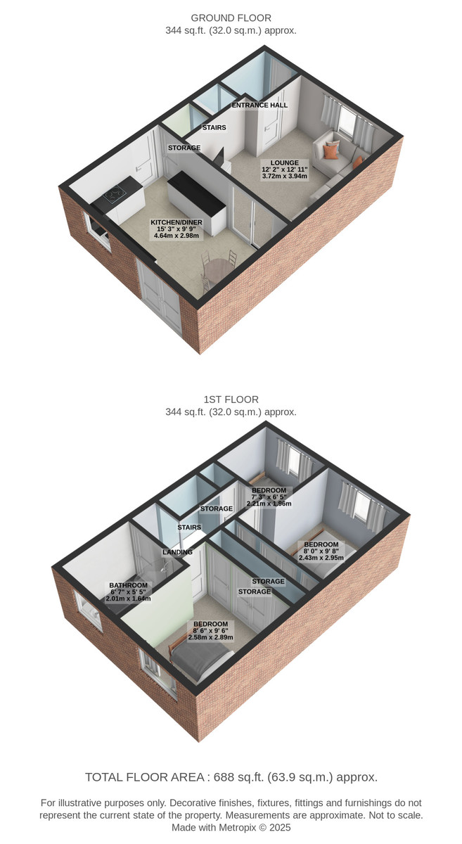 BEDROOM 7' 3" x 6' 5" (2.21m x 1.96m) Positioned at the front of the house a single bedroom with front facing double glazed window and a radiator.