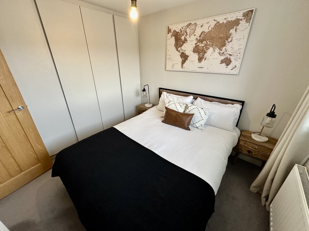 BEDROOM 7' 11" x 9' 8" (2.43m x 2.95m) The front double bedroom benefits from fitted wardrobes, front facing double glazed window and a radiator.