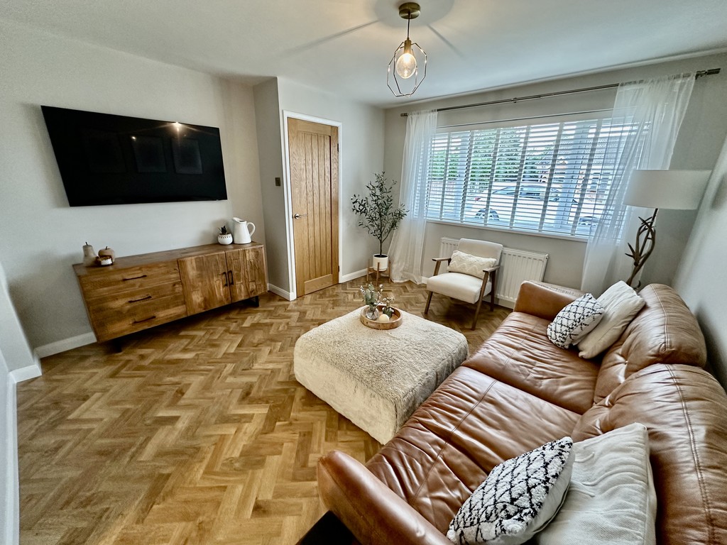 LOUNGE 12' 2" x 12' 11" (3.72m max x 3.94m) L-shaped reception room with a stylish finish throughout, sliding door to the open plan kitchen/diner, radiator and front facing double glazed window.