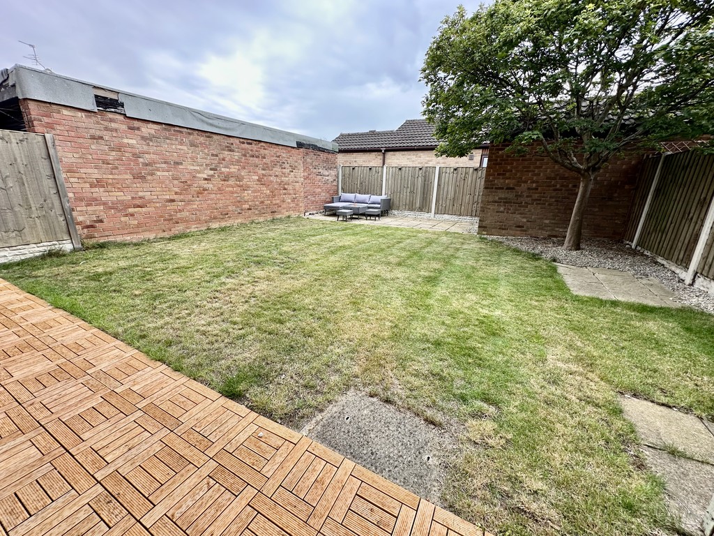REAR GARDEN Private rear garden mainly laid to lawn, with small patio area to the rear, fence enclosure and mature tree.