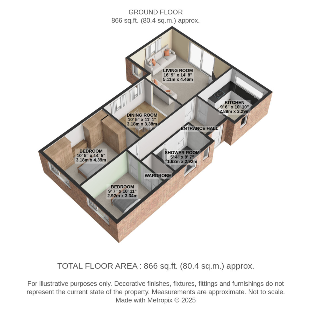 INNER HALLWAY 3' 7" x 18' 4" (1.10m x 5.59m) Provides access to both bedrooms and wet room.