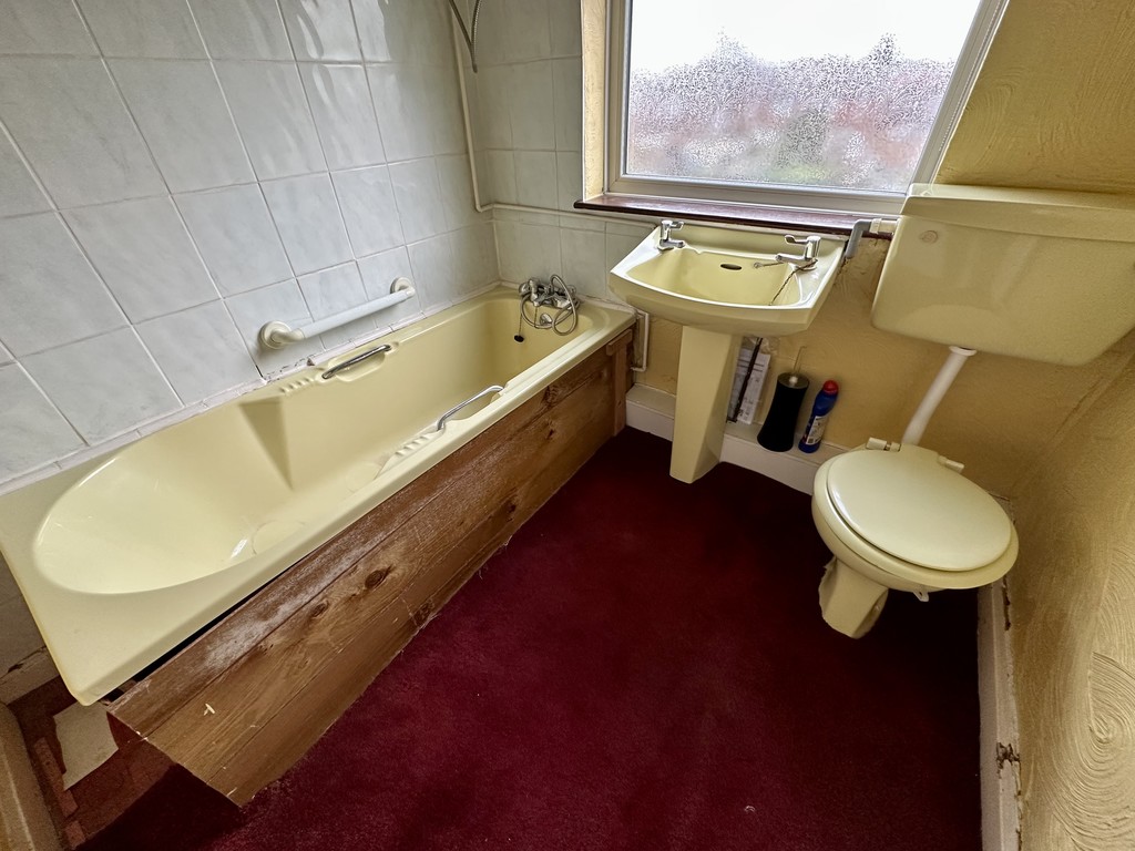 BATHROOM 6' 5" x 6' 5" (1.96m x 1.96m) The bathroom benefits from a three piece suite comprising of a low flush WC, wash hand basin, bath with electric shower unit above, partially tiled walls, radiator, loft access point and rear facing double glazed frosted window.