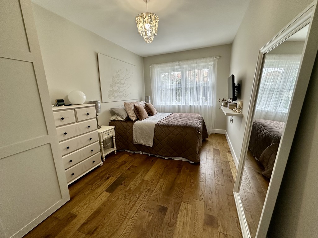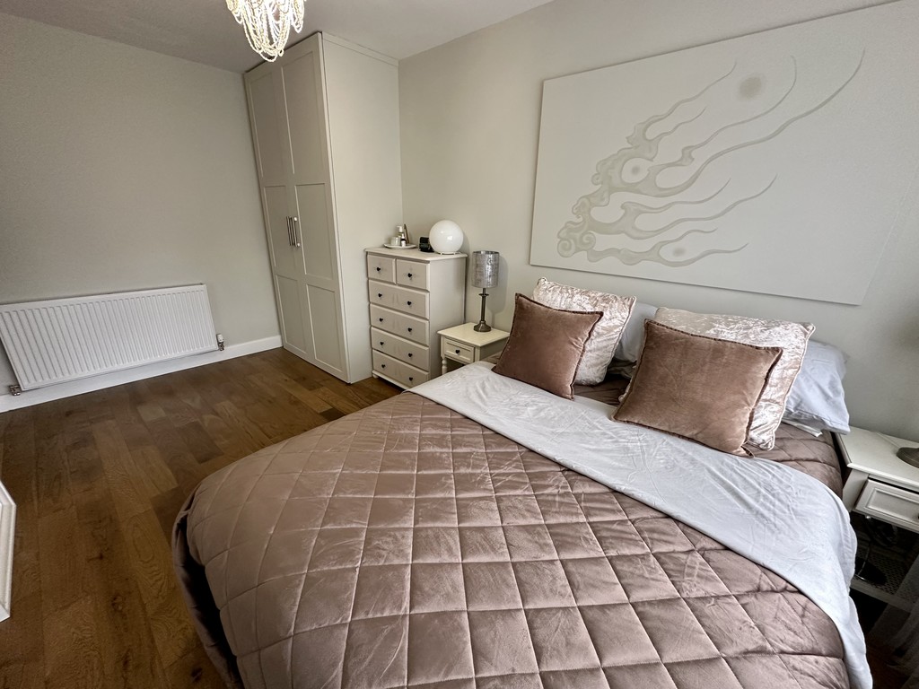 BEDROOM 10' 9" x 8' 6" (3.29m x 2.60m) Beautiful double bedroom with front facing triple glazed window, radiator, oak flooring and fitted wardrobes.
