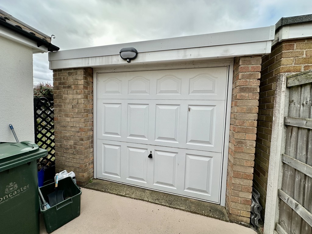 GARAGE Single detached garage with up and over front door, side facing double glazed window, further side facing door to the garden, also benefits from power points, lighting and an external power socket at the rear of the garage.