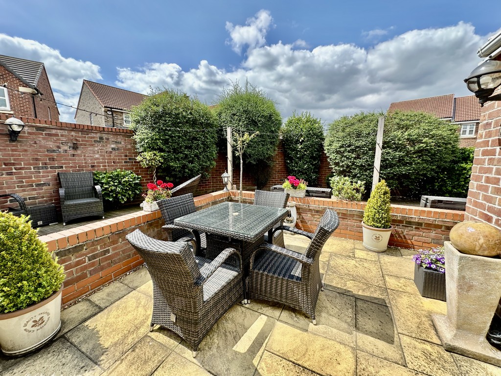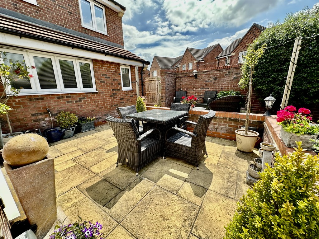 REAR GARDEN Low maintenance rear garden over two tiers, with wall enclosure offering privacy, paved patios, raised decking, external lighting, water tap, side and rear access gates.