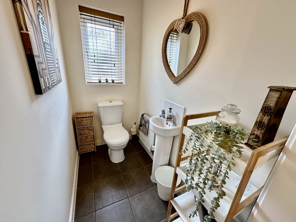 WC 6' 3" x 3' 6" (1.91m x 1.09m) Nicely presented WC benefitting from a low flush WC, wash hand basin, radiator, tiled flooring and side facing double glazed frosted window.
