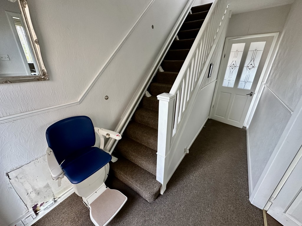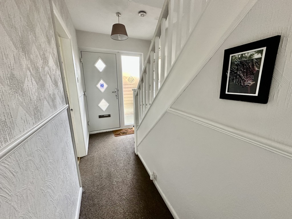 ENTRANCE HALL 5' 11" x 12' 7" (1.81m x 3.86m) The property is accessed via the side facing double glazed frosted door to the hallway, side facing double glazed frosted window, dado rail, door to the lounge, door to the kitchen and stairs to the first floor landing.