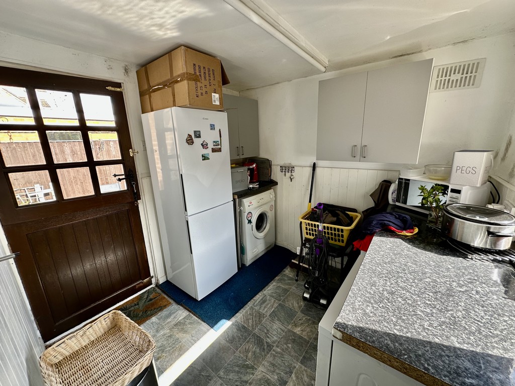 UTILITY ROOM 8' 5" x 7' 11" (2.57m x 2.42m) Useful utility space with side facing single glazed stable door to the garden, side facing single glazed window, partial wood panelled walls, rolled top work surface, plumbing for a washing machine, space for a tumble dryer and space for a fridge/freezer.