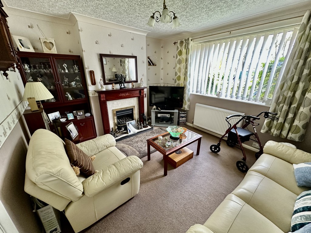 LOUNGE 11' 0" x 13' 5" (3.36m x 4.11m) Lovely reception room with front facing double glazed window, radiator, coving, coal effect gas fire and a decorative feature surround.