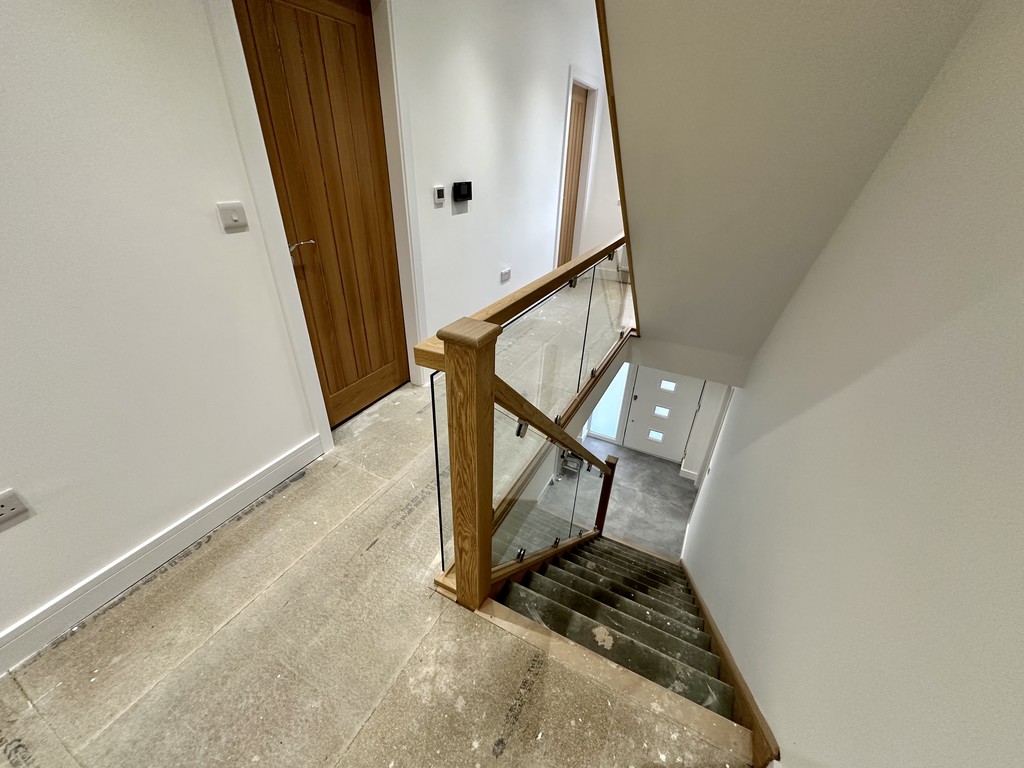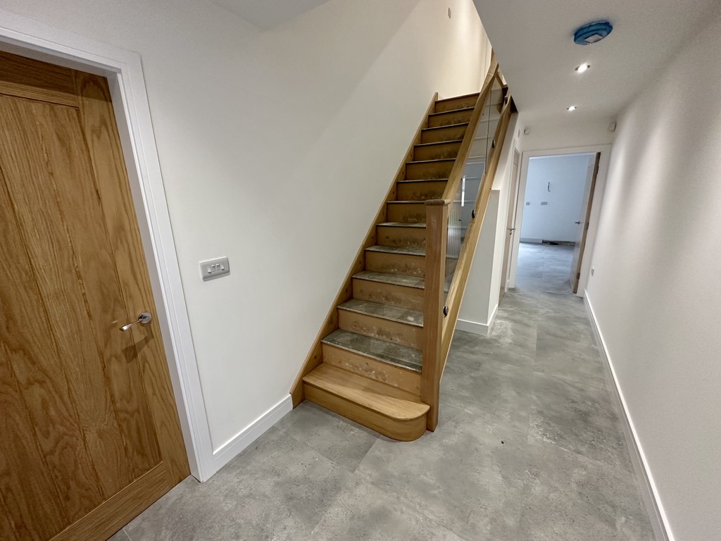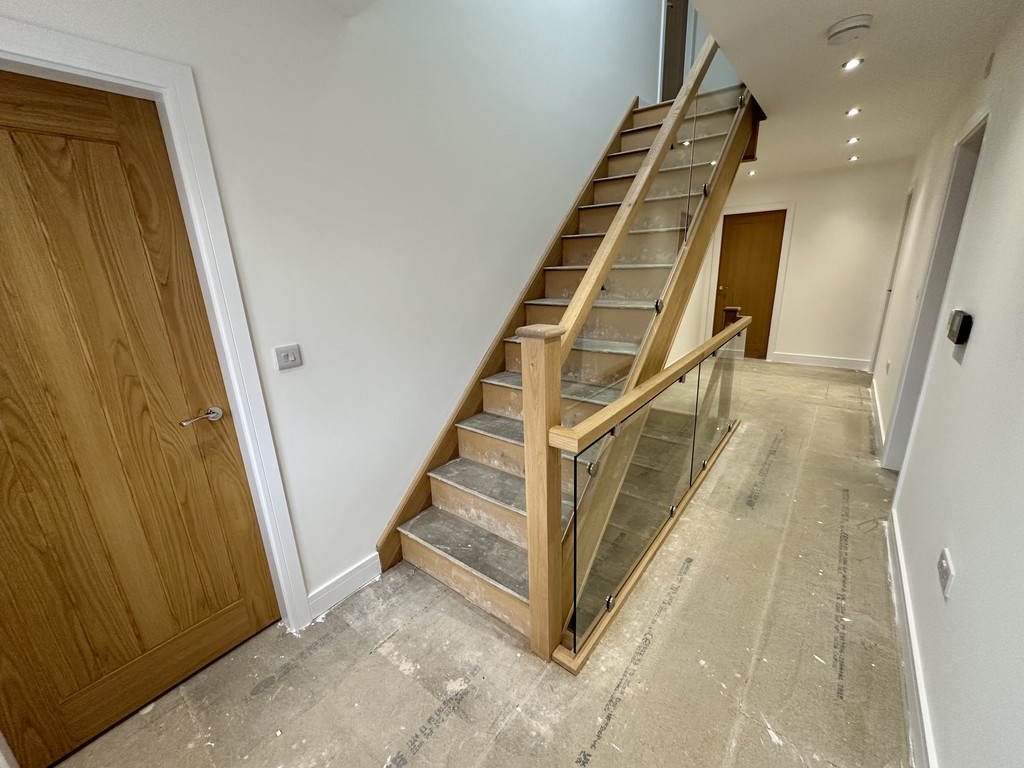 Leading from the entrance hallway to the first floor landing, with beautiful oak stair case and glass insert.