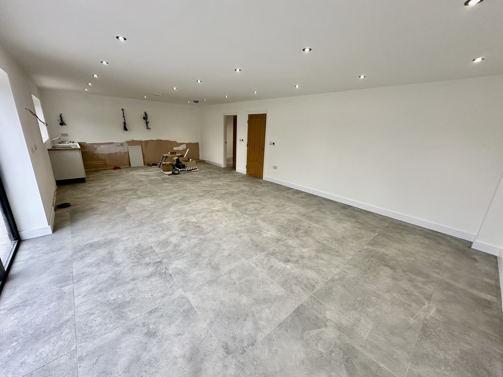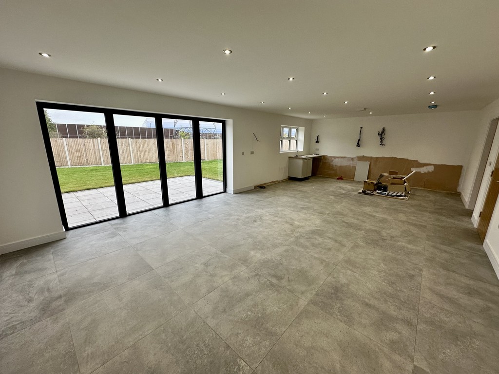 Ability to discuss fittings with developer. Great living kitchen/dining space with spotlights, porcelain floor tiling throughout, rear facing double glazed window, rear facing double glazed bi-folding doors to the patio, door to the utility room and under floor heating.