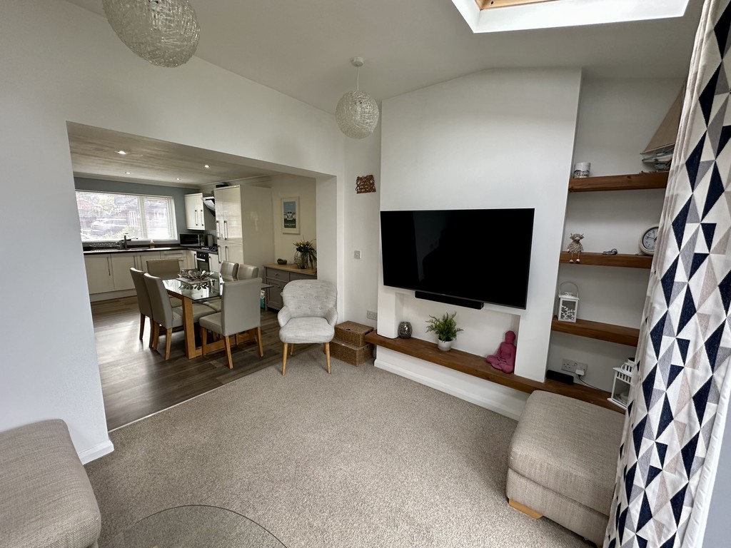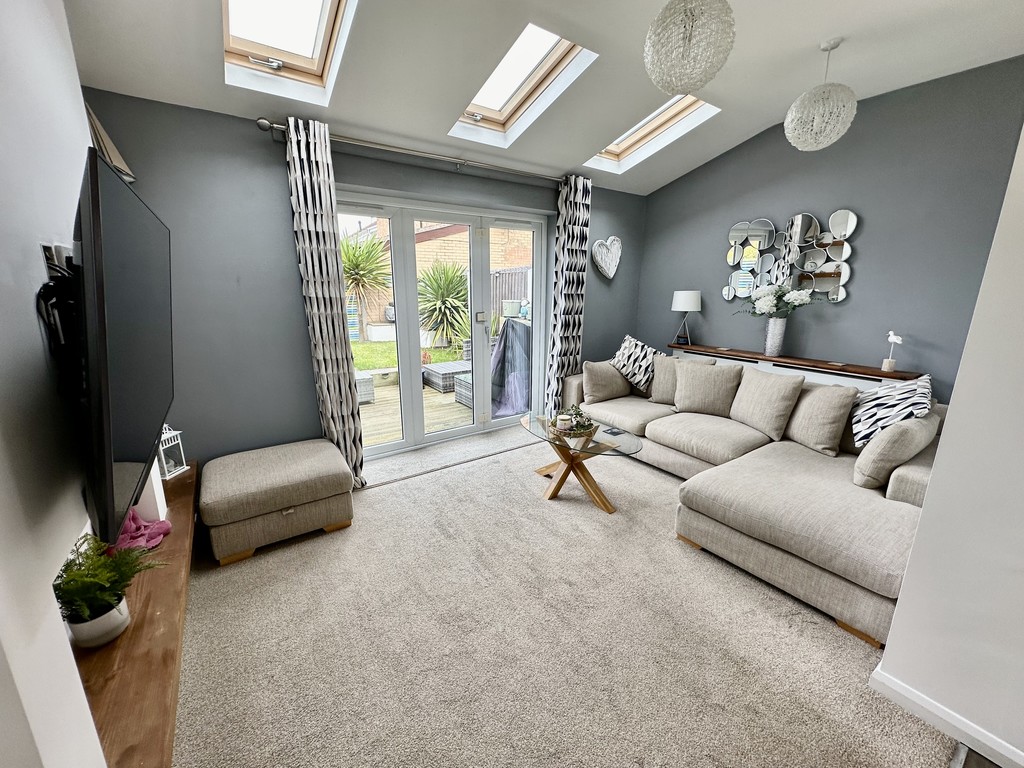 EXTENDED LIVING ROOM 14' 0" x 9' 0" (4.28m x 2.75m) Fantastic addition to the property providing the perfect cosy space overlooking the rear garden, rear facing double glazed bi-folding doors to the decking, three rear facing double glazed Velux style windows, and a radiator with cover.