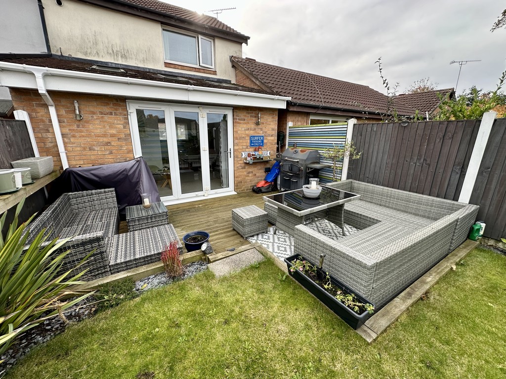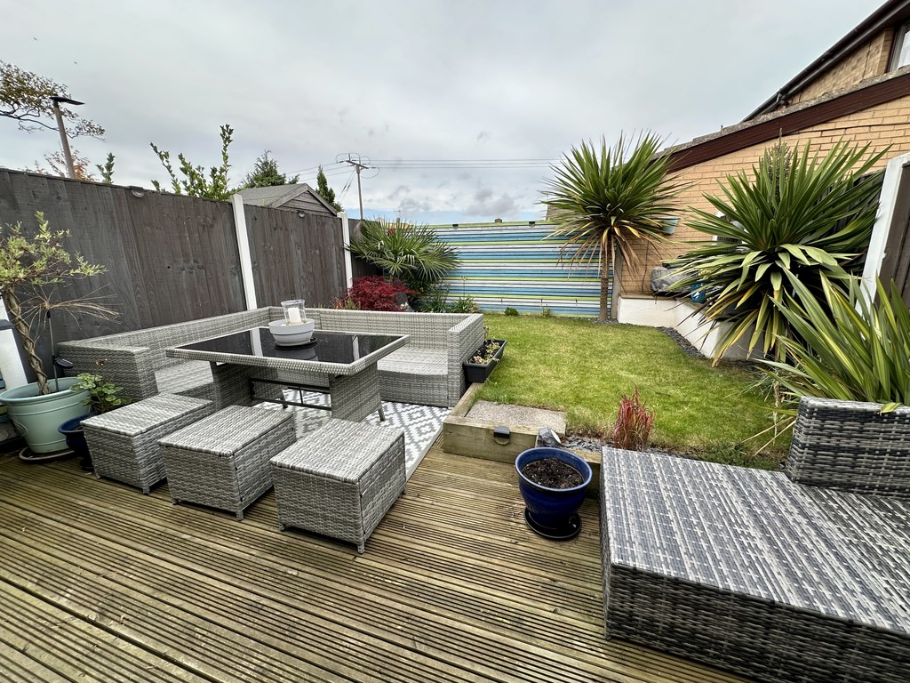 REAR GARDEN Fully fence enclosed rear garden with decking area, raised lawn, raised shrub beds and further slate beds. *Please note that certain mature trees are not included within the sale.