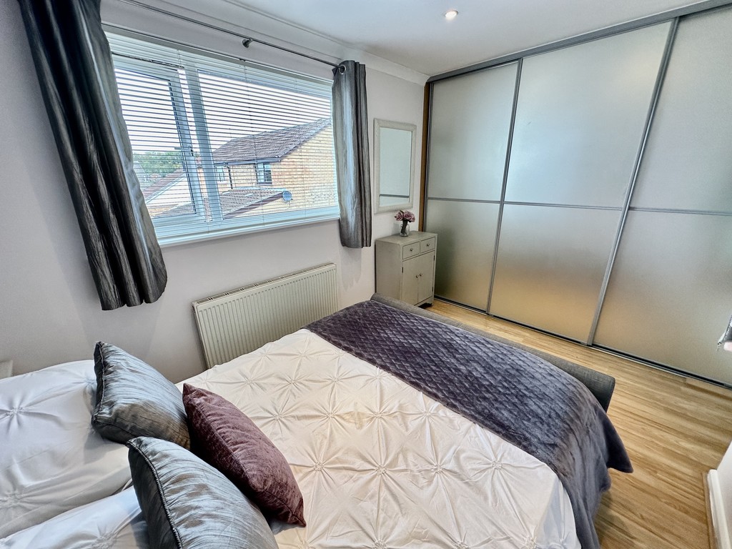 BEDROOM 11' 5" x 7' 9" (3.50m x 2.38m) Fabulous double bedroom with fitted sliding wardrobes, laminate flooring, coving, spotlights, radiator and a rear facing double glazed window.