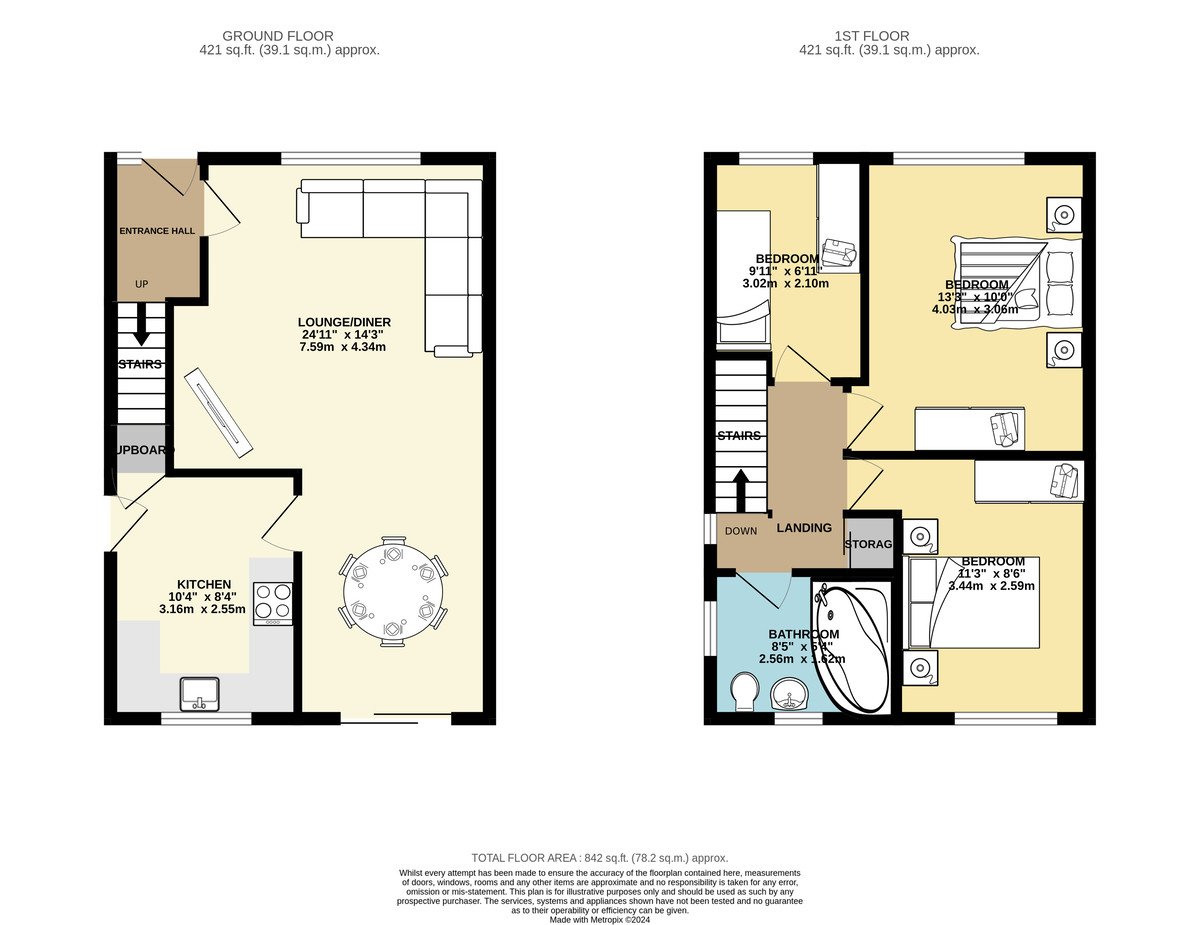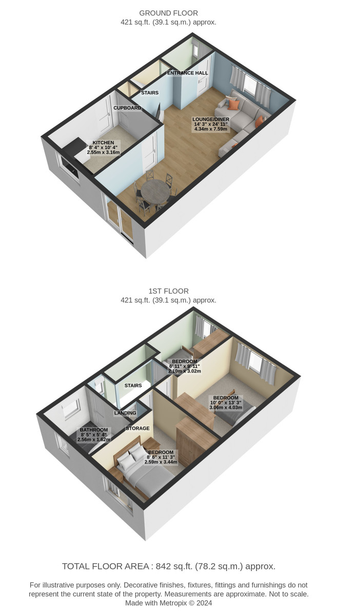 LANDING 6' 0" x 8' 6" (1.84m x 2.60m) Providing access to the bedrooms/bathroom, landing storage cupboard, radiator and side facing double glazed window.
