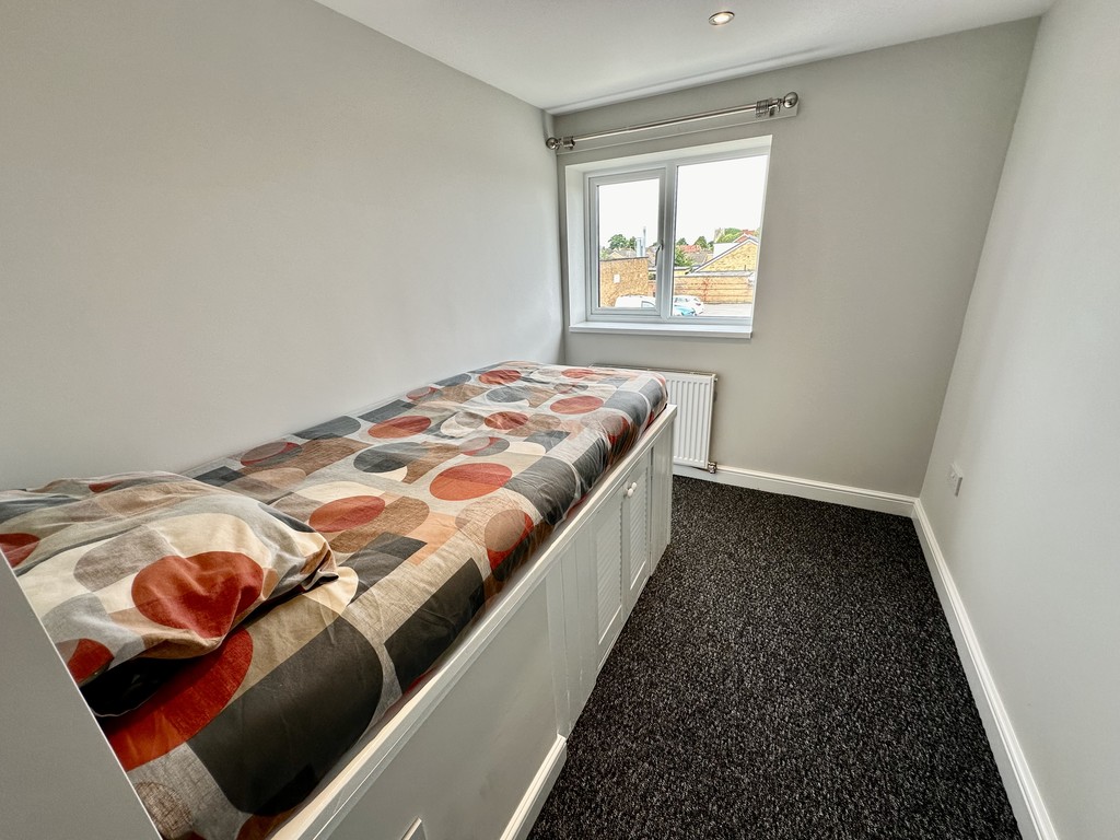 BEDROOM 6' 10" x 9' 10" (2.10m x 3.02m) Once again a spacious single bedroom with front facing double glazed window, radiator, spotlights, single bed base built above the bulk head with storage cupboards beneath.