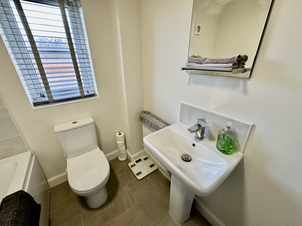 WC 5' 4" x 3' 2" (1.63m x 0.98m) Benefitting from a low flush WC, wash hand basin, radiator and side facing double glazed frosted window.
