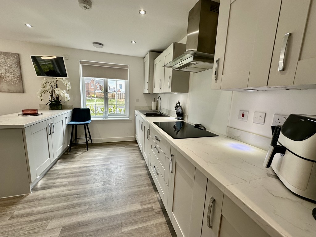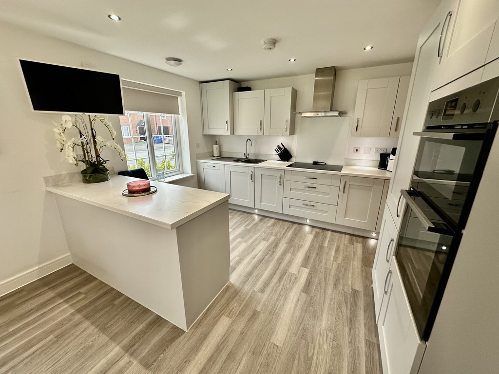 KITCHEN/DINER 11' 8" x 19' 10" (3.58m x 6.06m) Beautiful open plan kitchen/dining space with lovely modern fitted kitchen cabinetry, work surfaces with matching splash backs, single and half bowl sink with drainer, AEG five ring induction hob, double electric oven, integrated dishwasher, integrated fridge/freezer, low level lighting, spotlights, radiator, amtico flooring, open access to the utility room, front facing double glazed window and two side facing double glazed windows.