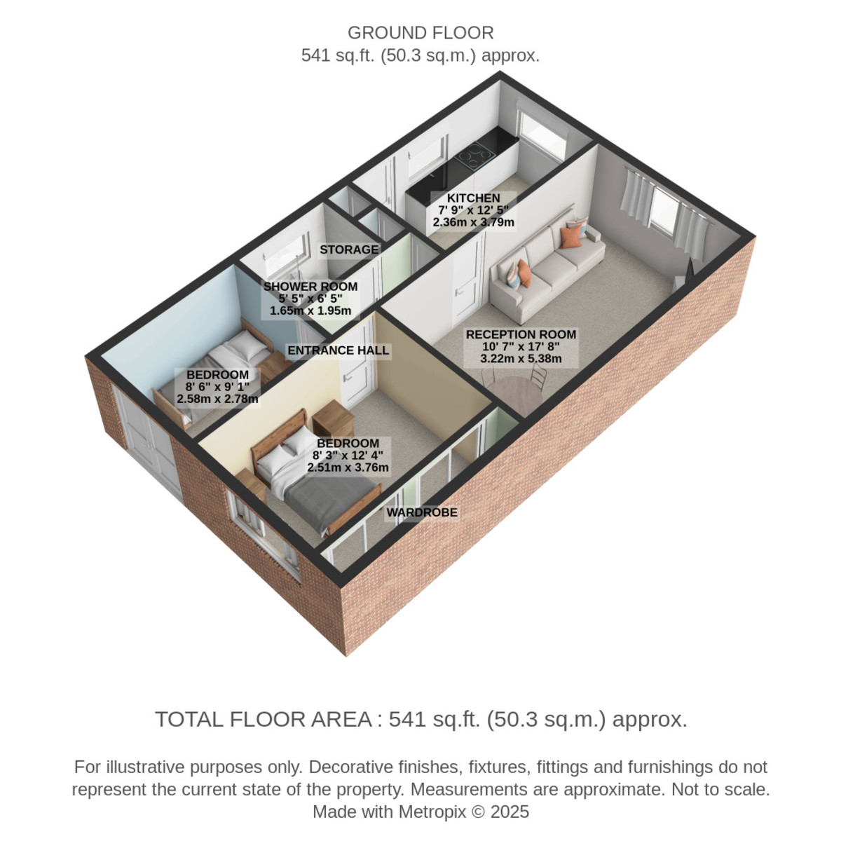 INNER HALL 2' 8" x 8' 2" (0.83m x 2.50m) Providing access to the bedrooms/shower room.