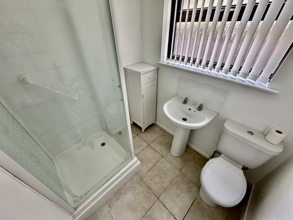 SHOWER ROOM 5' 4" x 6' 4" (1.65m x 1.95m) The shower room comprises of a low flush WC, wash hand basin, shower cubicle with electric shower unit, partially tiled walls, tiled flooring, radiator, loft access point and side facing double glazed frosted window.