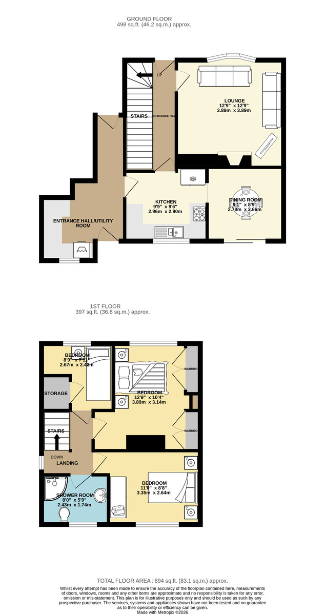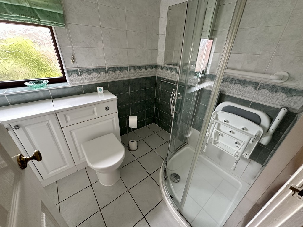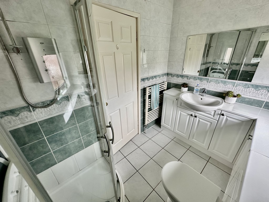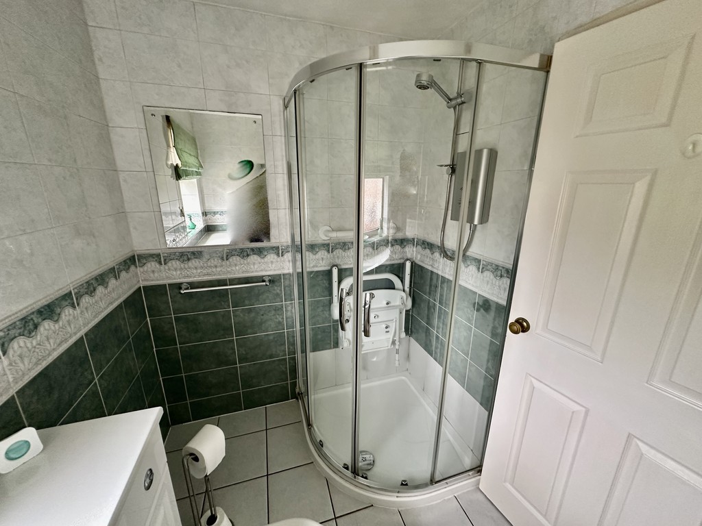 SHOWER ROOM 7' 11" x 5' 8" (2.43m x 1.74m) Shower room benefits from fitted vanity storage beneath the wash hand basin, low flush WC, corner shower cubicle with electric shower unit, tiled flooring, tiled walls, heated towel radiator and rear facing double glazed frosted window.
