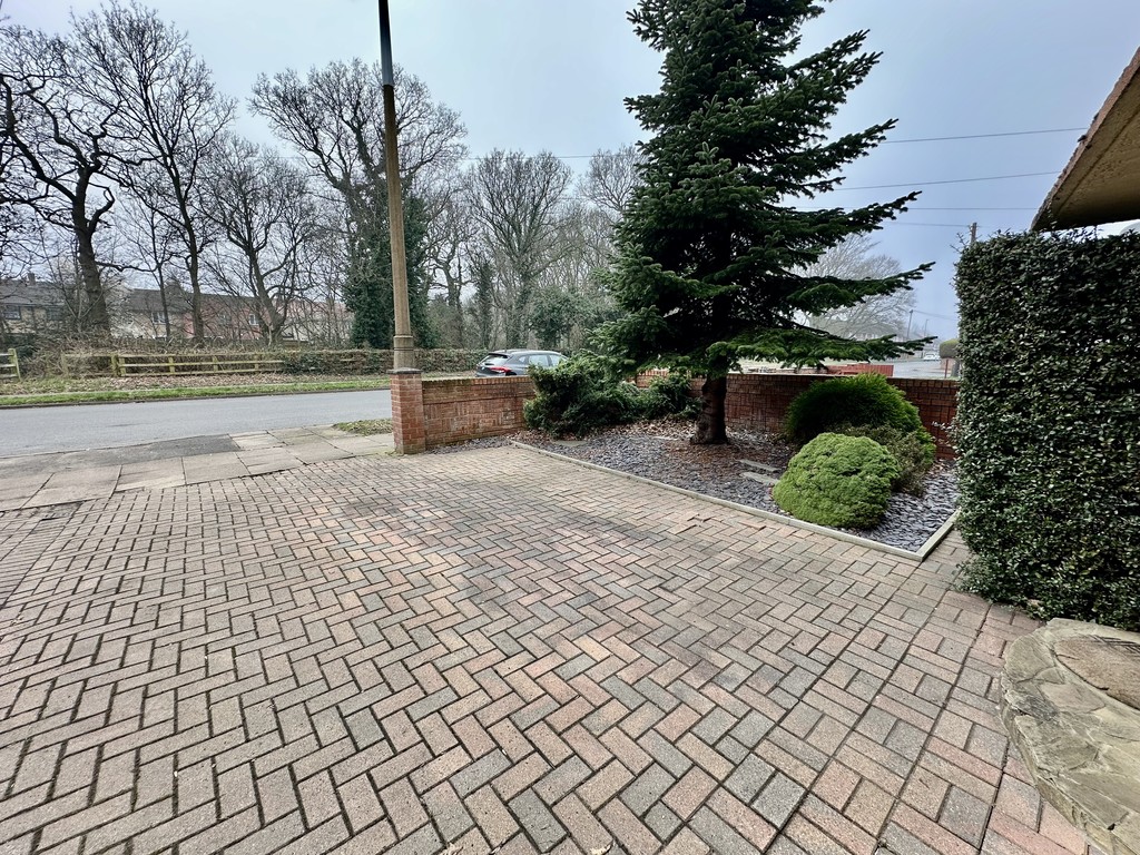 FRONT GARDEN/DRIVEWAY Open access to the paved driveway providing off street parking, wall partial enclosure, slate beds, mature trees and bushes.