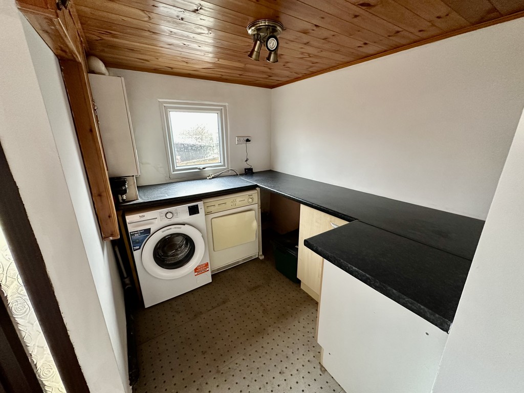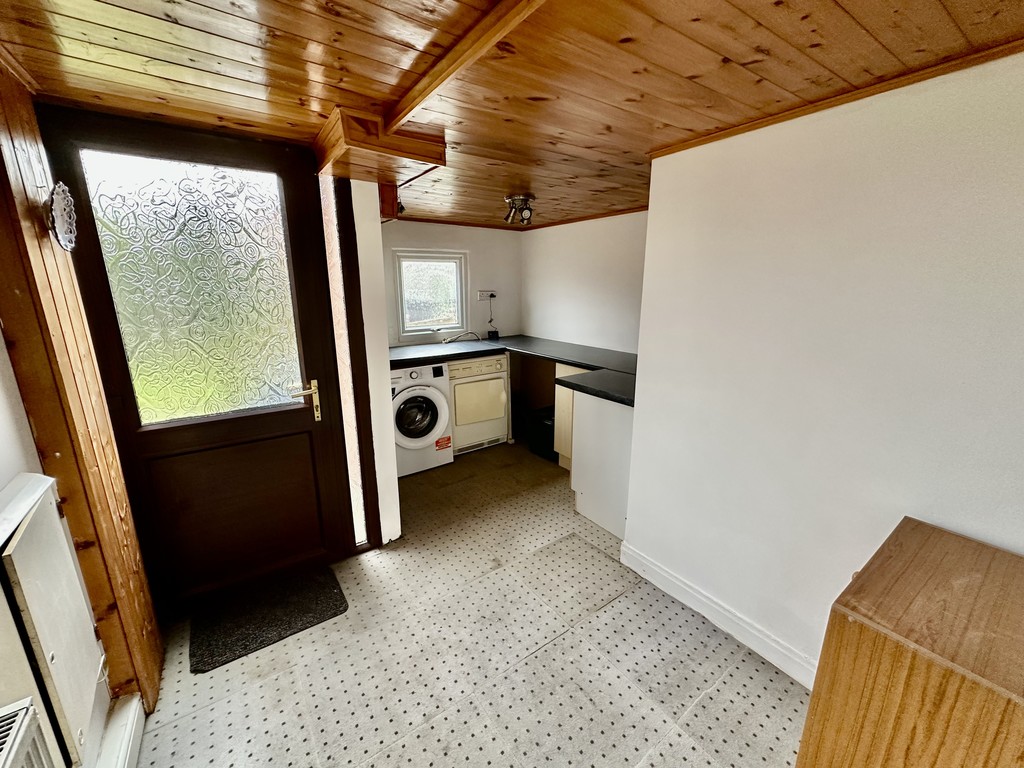 SIDE ENTRANCE HALL/UTILITY 6' 4" x 7' 8" (1.94m x 2.35m) Additional utility space with fitted units, plumbing for a washing machine, rear facing double glazed window, radiator, wood panelled ceiling, boiler unit, front and rear facing double glazed frosted door.