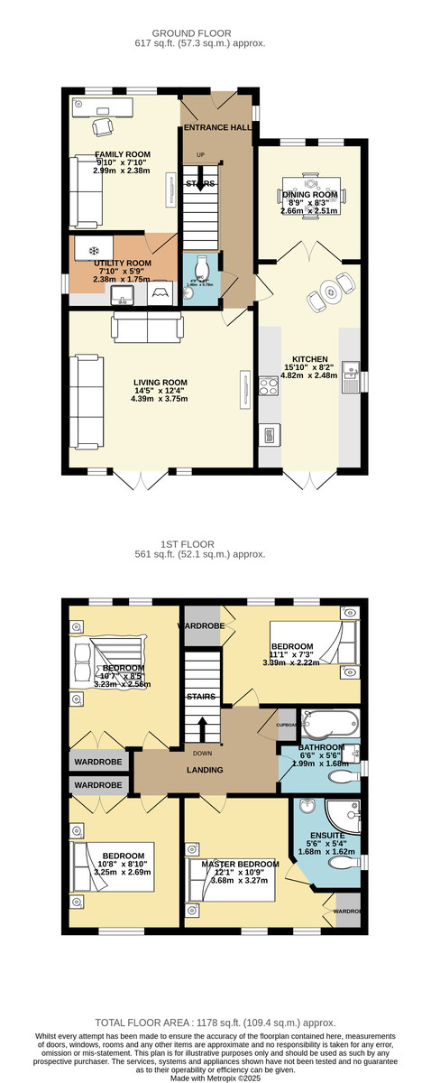 ENSUITE 5' 6" x 5' 3" (1.68m x 1.62m) Immaculately presented shower room with partially tiled walls, tiled flooring, corner shower cubicle with dual shower head, low flush WC, wash hand basin, extractor fan, heated towel radiator and side facing double glazed frosted window.