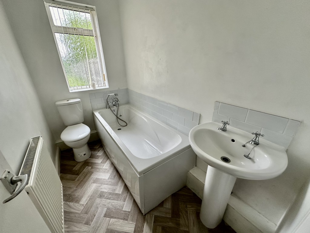 GROUND FLOOR BATHROOM 4' 5" x 7' 11" (1.35m x 2.43m) Nicely presented bathroom with a three piece suite comprising of low flush WC, wash hand basin, bath with shower attachment, partially tiled walls, radiator and rear facing double glazed frosted window.